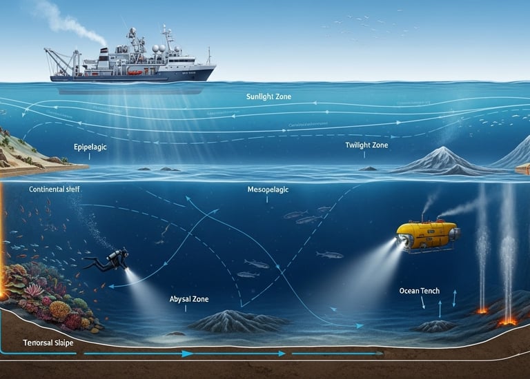GEOLOGY – Exploration of earth sciences beneath the ocean, focusing on seabed structures and resources.